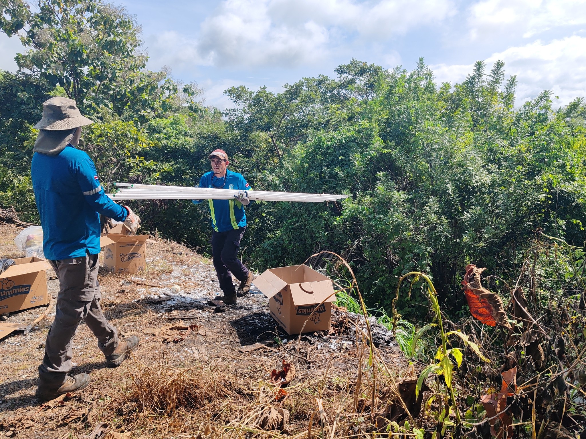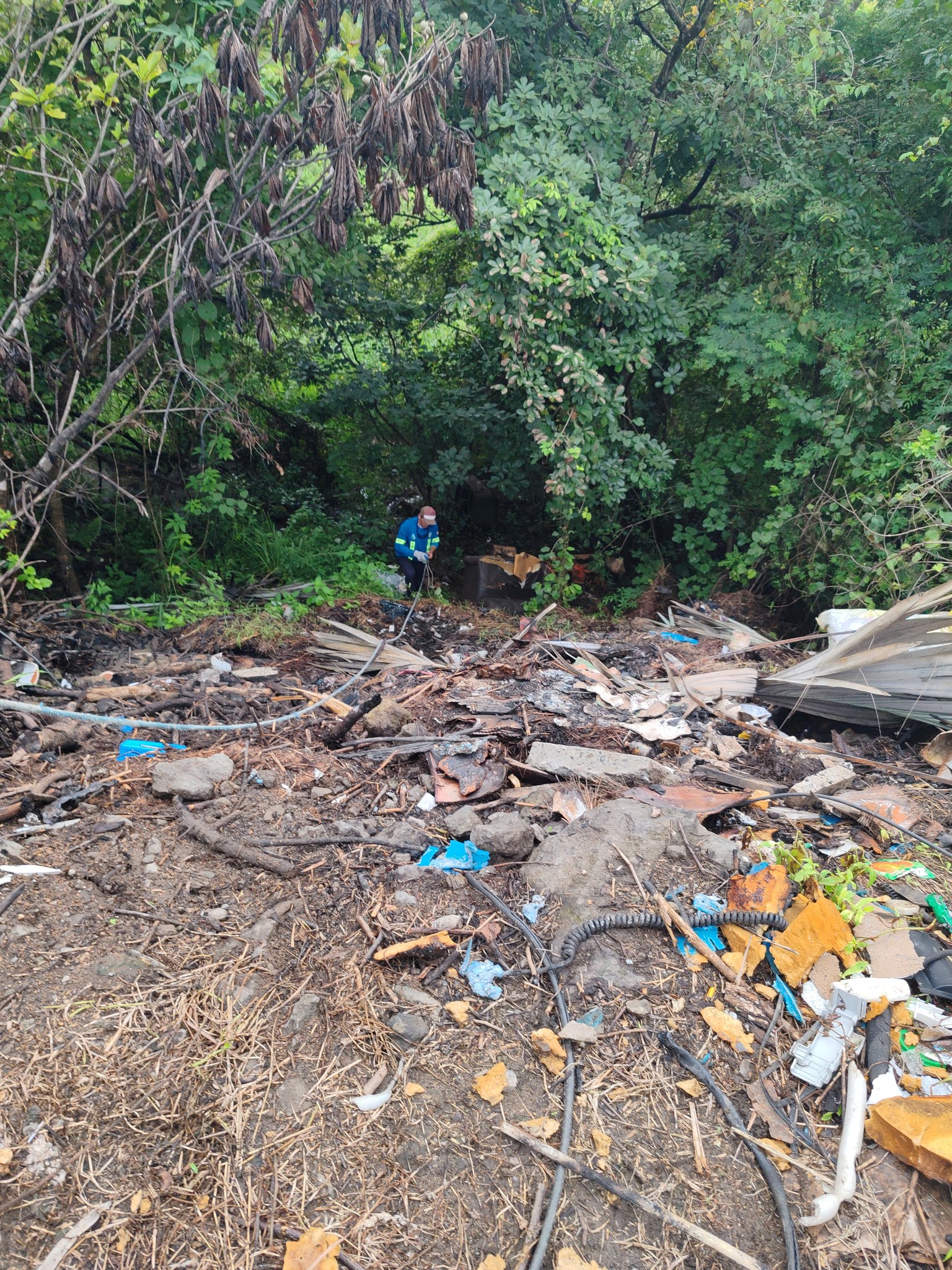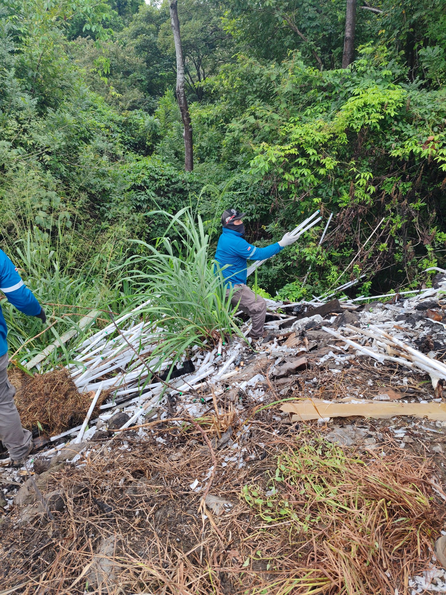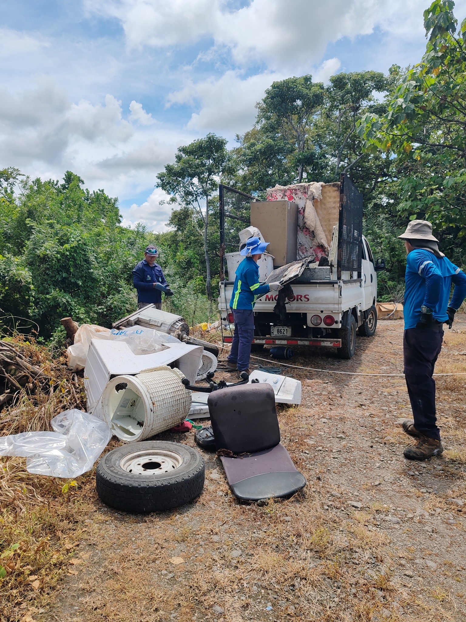 En atención a una denuncia ciudadana en el sector de Río Blanco, cerca del sifón, la Municipalidad de Bagaces constató la existencia de un botadero ilegal con una gran acumulación de residuos de todo tipo: restos de poda, losas sanitarias, sillones, llantas, escombros, botellas de vidrio y, en particular, una cantidad excesiva de fluorescentes, bombillos y lámparas, los cuales requieren un manejo especial por su nivel de riesgo.