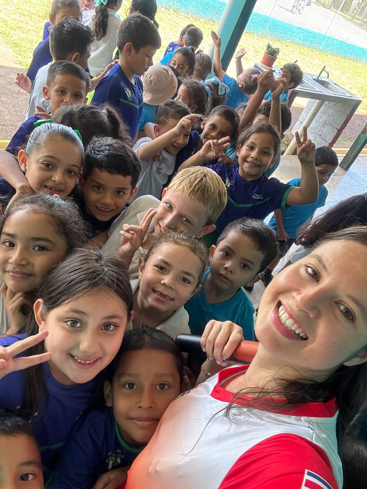 - En la Escuela Tomás Guardia, el instructor Diego Ordóñez impartió un taller lleno de energía y participación.